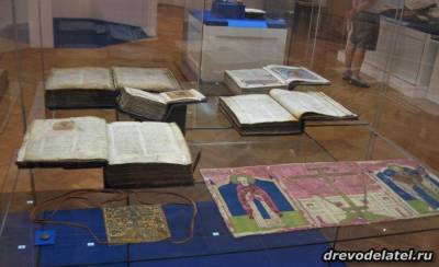 Множество выставлено на выставке старинных рукописей. При взгляде на них, особенно вживую, меня всегда охватывает волнительный трепет — только представить, что каждая буковка выписана вручную терпеливым писцом, что в эти книги вложены месяцы кропотливого труда… Похожее чувство я испытываю при осмотре русских деревянных храмов, в которых также каждое бревно и каждая лемешинка вытесаны вручную плотниками-мастерами. Вот уж давным-давно их нет на земле, но они живы в этих храмах и в этих рукописях… Невозможно равнодушно созерцать эти рукодельные шедевры.