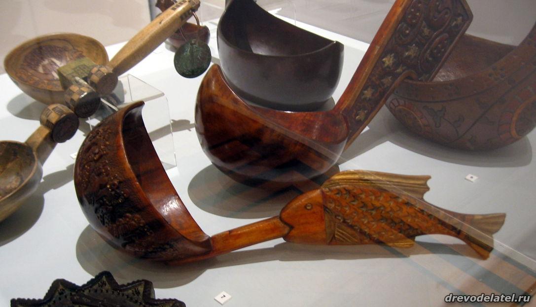 Самые ранние из представленных предметов — ковши, изготовленные в XIX веке на Русском Севере и в Поволжье. Среди других — ложки Сергиево-Посадского региона рубежа XIX-XX веков, в том числе ложки И.С. Хрустачева со сценами из жития Сергия Радонежского, поражающие своей тончайшей миниатюрной резьбой.