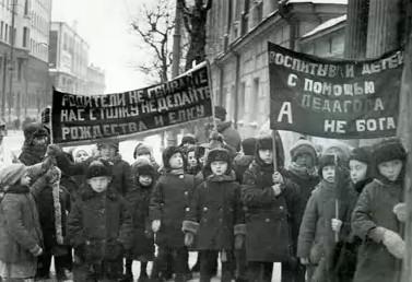 На фото детская демонстрация, организованная большевиками в 1929 году против празднования Рождества Христова.