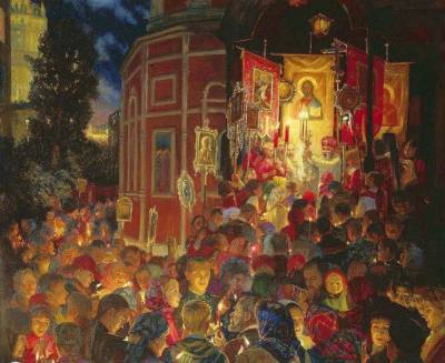 Полночь. Всё замирает в ожидании самого торжественного, самого ликующего и вдохновенного богослужения, равного которому нет во всех службах церковного календаря.