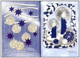 Отличная книга с очень красивыми проектами рождественских витражей для окон. Причём рисунки вполне можно использовать для резьбы и выжигания по дереву с последующим раскрашиванием. Помимо фотографий готовых витражей к ним даны шаблоны.