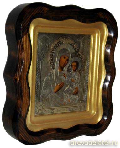 Это очень удобно при нестандартных размерах иконы, когда невозможно подобрать готовую рамку из магазина. Более того, в отличие от магазинных рамок, мои рамки склеены высококачественным клеем, а не скреплены всухую металлическими вставками (как показывает практика, такие рамки со временем разваливаются). При отделке рамок я использую высококачественные лакокрасочные материалы. Иконки могут быть украшены позолоченной каймой.