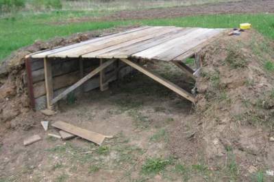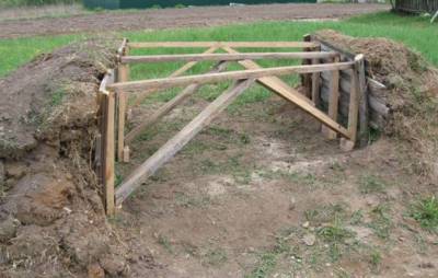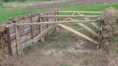 Начал с вылета - вкопал на полметра два столбика, к ним прибил доски, к доскам накидал кочку, которая должна стать вылетом: