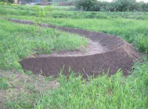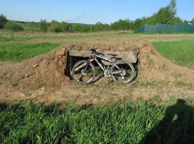 Из-за отсутствия опыта и подобных наработок и мануалов в рунете по прочим элементам дёрт-строительства, я допустил ошибку, из-за которой контруклон пришлось срыть и отодвинуть.