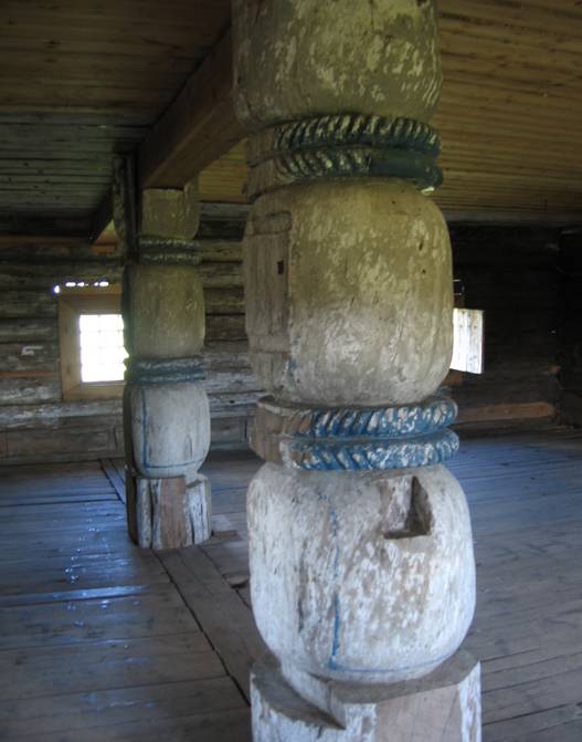 В Саунино после осмотра и фотографирования храма искали смотрительницу, Тамару Ивановну, дом за магазином. Открыл мужик, который согласился показать храм вместо неё (уехала+выходной), разрешил фотографировать внутри.