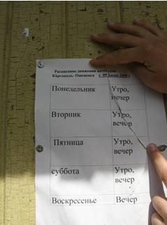 Пришли к остановке в 13:50. Очень посмеялись над автобусным расписанием: