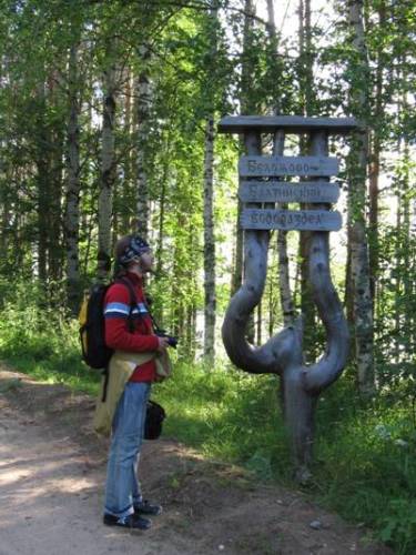 Встали в 5:30 на автобус на Лекшмозеро. Вышли в 6:30, приходим - облом! Приехавшая большая группа подростков-туристов раскупила все билеты. Тут же заказали по мобилу такси "Четверочка". Поехали в 7:00, приехали в 8:20. Отдали 900 руб. Дорога сложная, иногда асфальт, иногда плиты, в основном грейдер, после начала Кенозерского парка сплошные крутые повороты, больше 50 км/ч ехать не удается.