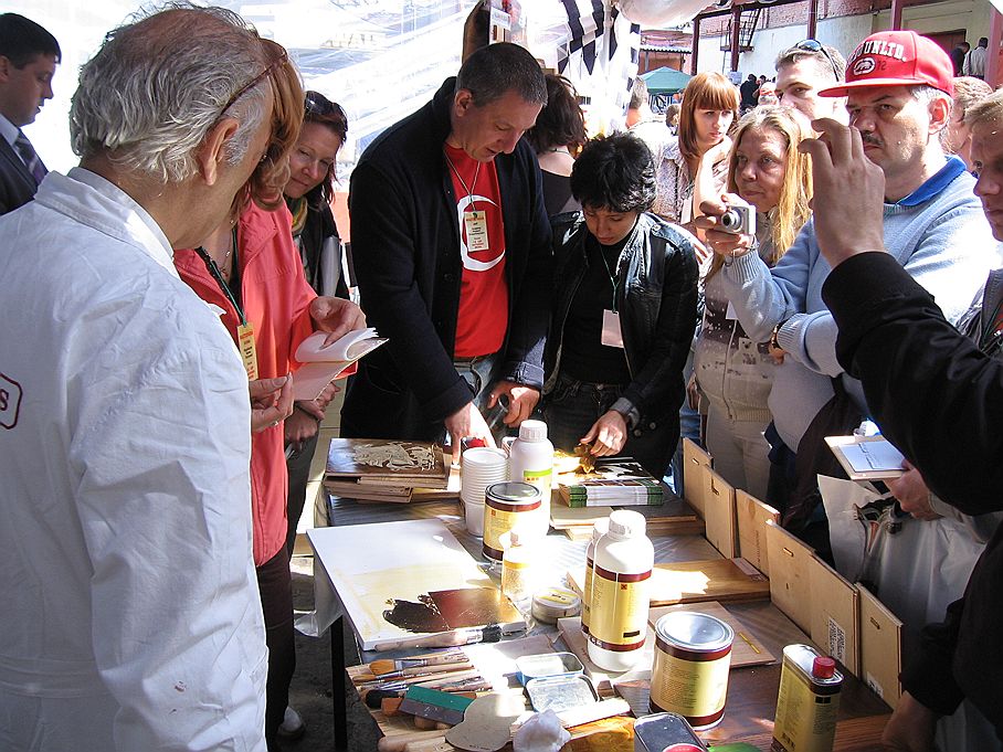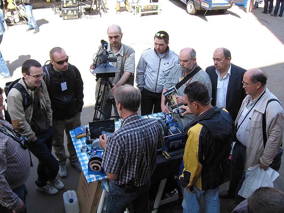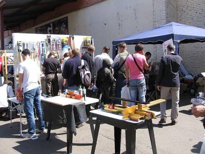 Слёт – это и проводимые мастерами по их собственной инициативе мастер-классы в течение всех двух дней одновременно в разных местах уютной площадки (между прочим, на территории Останкинского пивзавода ;-)) – и я метался то от палатки Бормы к токарным станкам, на которых показывали приёмы точения и давали ценные советы,