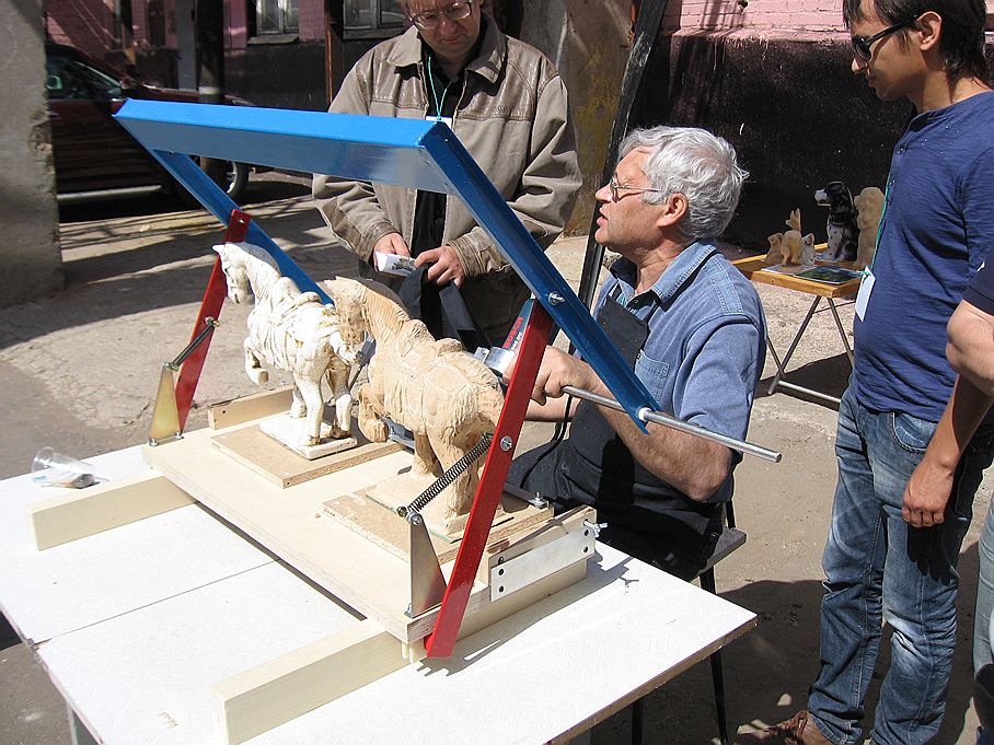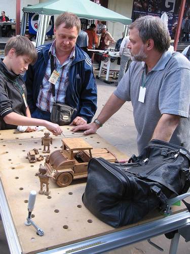 Теперь, побывав на слёте, могу скромно сказать, что Слёт Мастеровых – это даже нечто большее, чем мероприятие (сужу по 7-му слёту! ;-)), - это отлично организованный праздник для интересующихся древоделием, на котором и производители да продавцы презентуют свою продукцию, а участники могут в деле испытать все эти инструменты (я, например, наконец-то испробовал эксцентриковую орбитальную шлифовальную машину на стенде Bosch и убедился в необходимости такого инструмента; а ещё поработал отличной бормашиной российского производства «Профиль», незаменимой для скульптурной резьбы; и наконец-то вживую познал фрезерно-копировальный станок, поняв, что он незаменим для изготовления точных копий изделий, но вот единичные изделия намного быстрее и качественнее делать вручную;