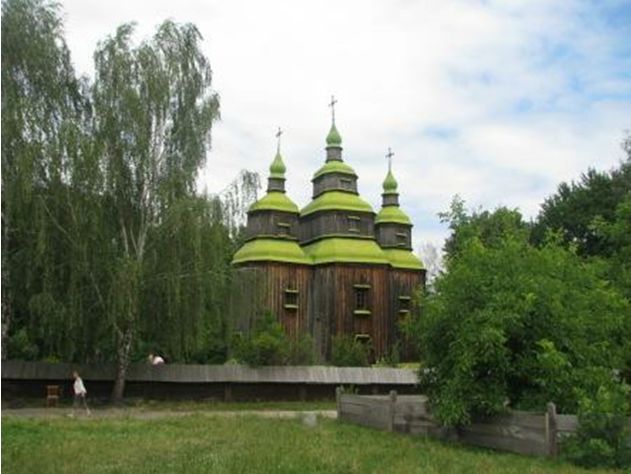 Особое благоговение у всех посетителей вызывают старинные деревянные храмы. В Пирогово пять церквей, возраст каждой более двухсот лет, но все они живые – действующие. Храм Параскевы представляет район Среднего Приднепровья. Это очень высокая церковь (25 м) с резными косяками и прекрасным деревянным иконостасом, в боковом притворе находится чудотворная икона Божьей Матери. Церковь построена в 1742 году в Черкасской области из тяжелого «железного дуба», в который невозможно вбить гвоздь.