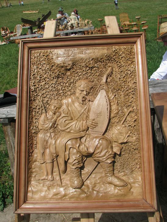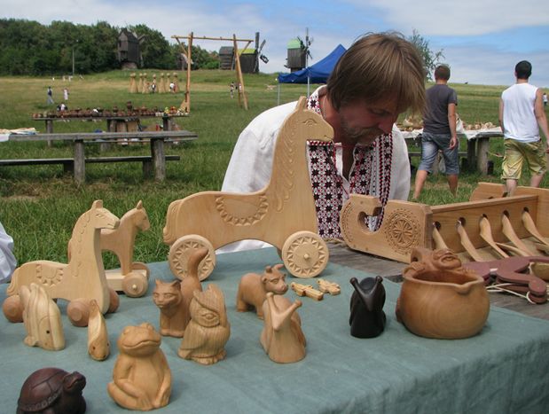 Наконец-то я добралась к выставке резьбы и плетения, она размещалась в поле возле ветряков и была совсем небольшая.