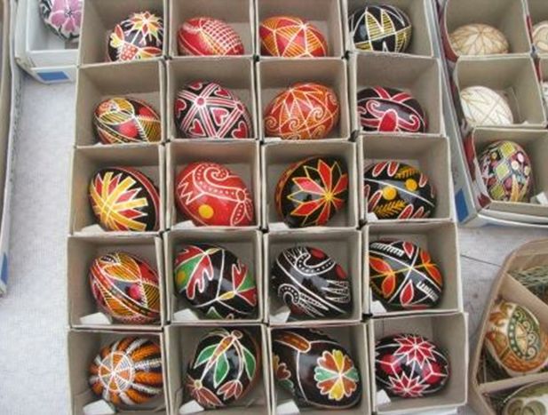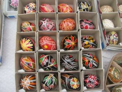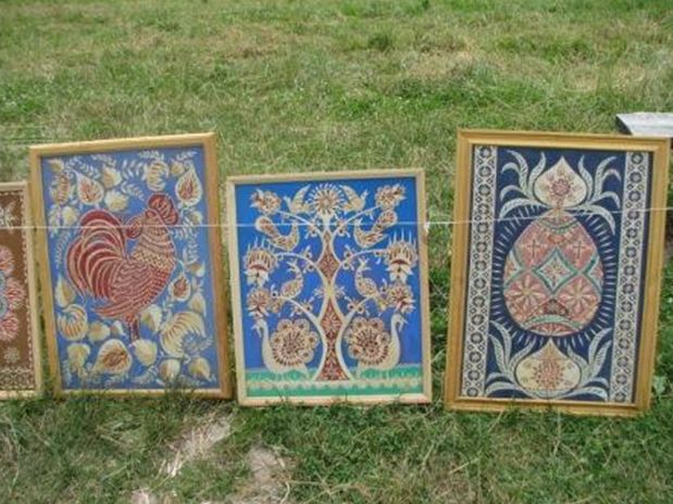 а здесь глаза разбегаются от красочных картин и икон, склеенных из соломы,