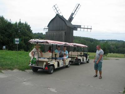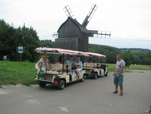 Входной билет для взрослых – 30 гривен, заказать экскурсию – от 80 грн. Можно ходить пешком (для молодых и активных), можно проехаться на таком колесном паровозике (за 50 грн – 1 час езды).