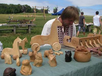 но наибольший ажиотаж вызвал мастер-класс по лепке из глины – из толпы вызывался доброволец, его одевали в вышиванку, и под чутким руководством мастера (бывший моряк первого разряда) и подбадриванием толпы он ваял свое первое творение, которое потом ему и дарили.