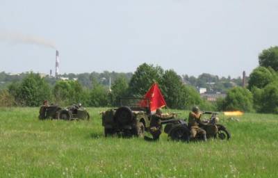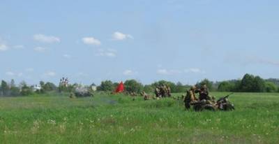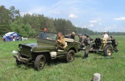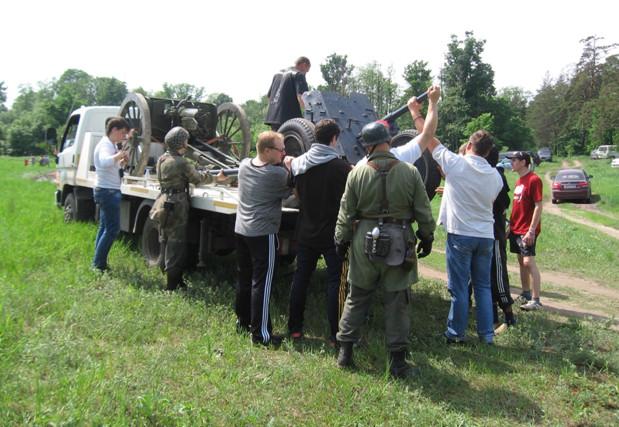 Уже при подходе к полю развернулась интригующая картина — люди в немецкой и советской форме и люди в гражданском деловито разгружали с грузовиков пушки,