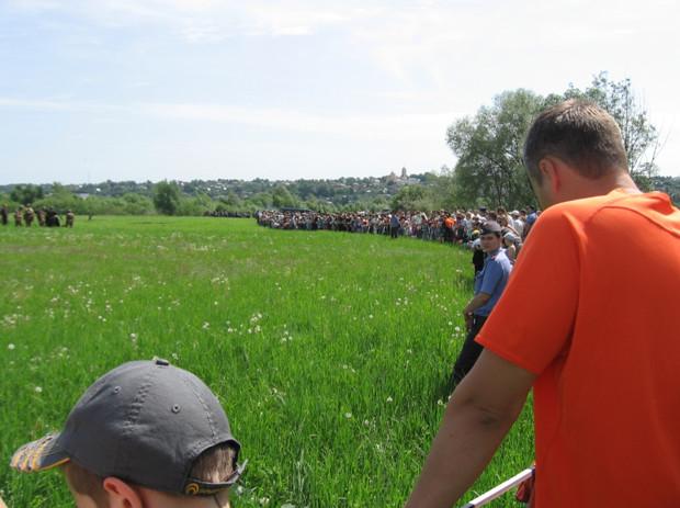 Вся битва заняла по продолжительности целый час, и сразу по её окончании зрители-ребятишки и их родители ринулись на поле, чтоб самим пощупать и поближе рассмотреть героев реконструкции.