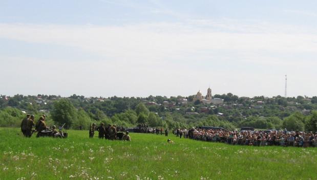 Ровно в 13 часов прозвучало приветствие к зрителям, рассказали о Курской битве, и началось само представление. При некоторой его условности (так, выдвижение войск здесь показали выездом мотоцикла туда и обратно), было интересно: