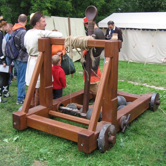 Ещё моё внимание привлекли катапульта с грозными снаружи, но добрыми внутри (ибо резиновые ;-)) ядрами,