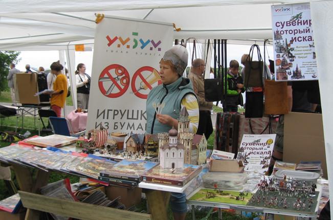 И вернуться к палаткам с сувенирами. Кстати, здесь был и любимый мною за замечательные бумажные поделки «Умбум», у которого я тут же приобрёл новые бумажные макеты храма святого Василия Блаженного и церкви Покрова на Нерли, а также развёртки древних шлемов ;-)