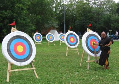 а вот лучник стреляет и вытаскивает потом из мишеней свои стрелы.