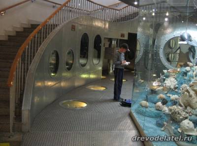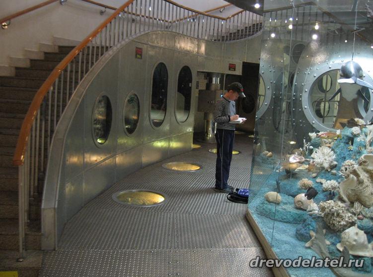 В музее есть и интерактивные площадки, где детишки и их родители могут поиграть и поразвлечься. На первом этаже это стилизация под подводную лодку, а то и батискаф.