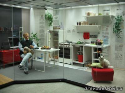 Но реальность на то и реальность, что возвращает из фантазий к жизни — вот, например, экспозиция с помойкой, а вот современное жилище с крысой в мусорном ведре (куда смотрит кошка?!).