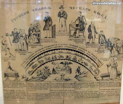 Там же в зале можно найти не менее интересный лубок, более подробно раскрывающий эту аллегорию.