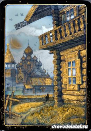 После кукол я насладился просмотром шедевров лаковой миниатюры. Вообще-то я равнодушен к таким росписям — нагляделся на дешёвые однообразные ширпотребные шкатулки и расписные яйца, продающиеся на вернисажах и ярмарках. Но то, что выставлено на этой выставке, меня поразило своей неординарностью и тончайшей красотой!
