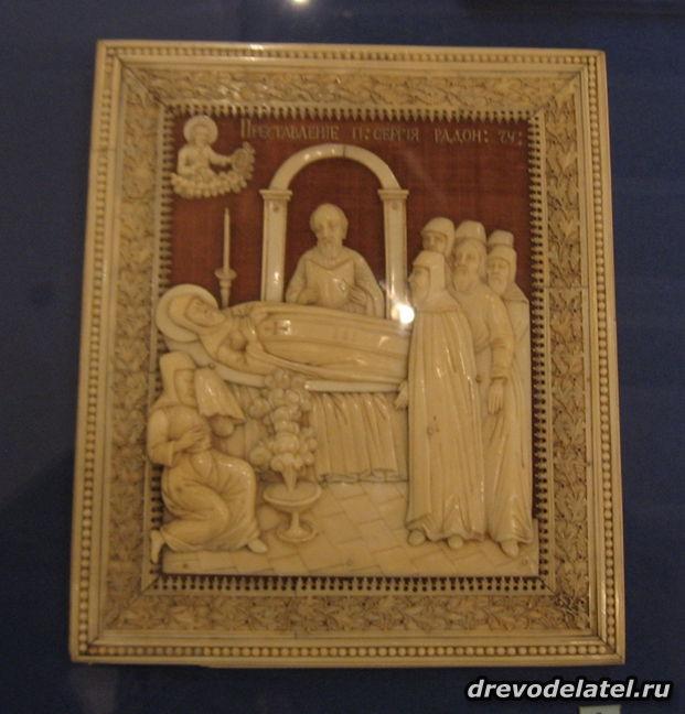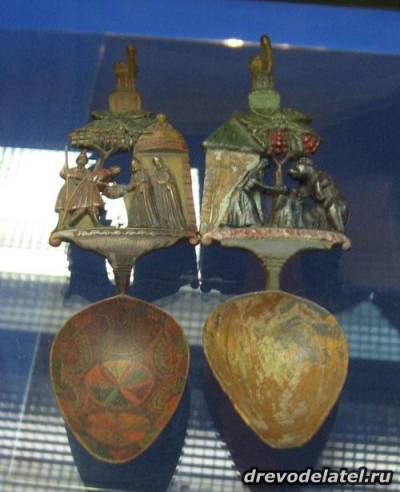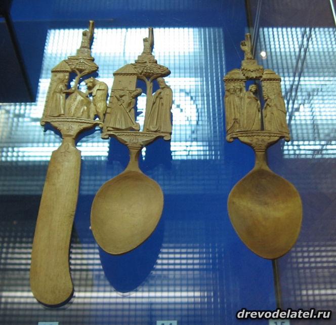Невероятно изящной работы резные деревянные ложки, в ручках которых вырезаны сценки из жития святого Сергия Радонежского.