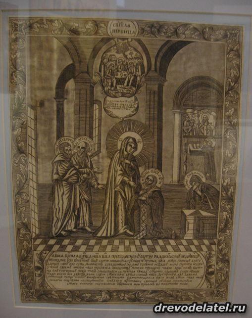 Очень интересно оказалось рассматривать дореволюционные гравюры, которые оказались также выразительны и впечатляющи, как иконы. На выставке множество гравюр, посвящённых как самому преподобному Сергию, так и его ученикам и созданным ими монастырям.