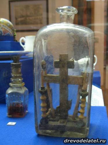 Восхитил меня крест-голгофа в бутыли — если я знаю, как вставляют кораблики в бутылки, то как собрали крест, можно только гадать.