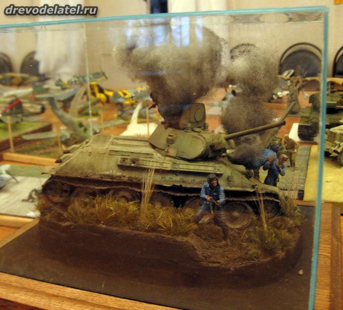 Потрясающе насыщенная сценка подорванного танка — впервые вижу так искусно сымитированный взрыв из ваты.