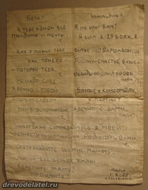 Вот подлинная записка 1937 года, которую успели оставить при аресте.