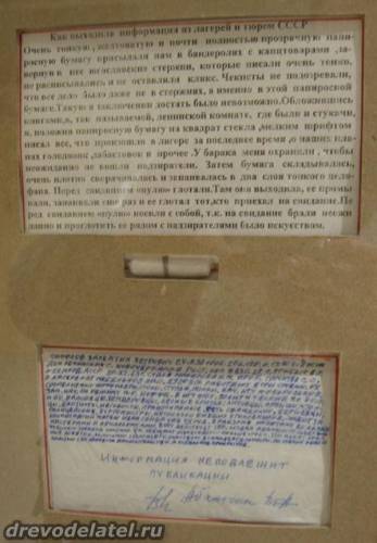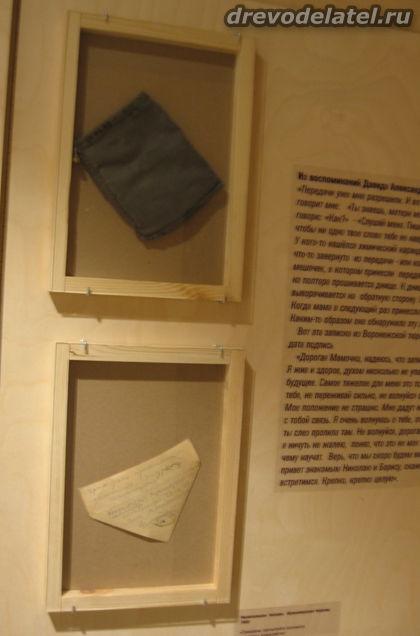 Осмотр выставки охватывает весь цикл от ареста до жизни в лагере, так что во время этого прохождения по часовой стрелке и постепенного изучения экспонатов к концу экспозиции глубже вникаешь в суть выставки и сильнее проникаешься атмосферой эпохи.