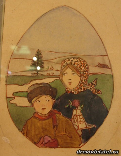 4. Яйцо, г. Сергиевский Посад, Московская губ., начало XX века. Дерево, точение, роспись, выжигание. ВМДПНИ
