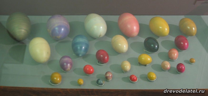 Пасхальные яйца, г. Сергиевский Посад, Московская губ., начало XX в. Дерево, точение, выжигание, роспись, раскраска, лак. ВМДПНИ