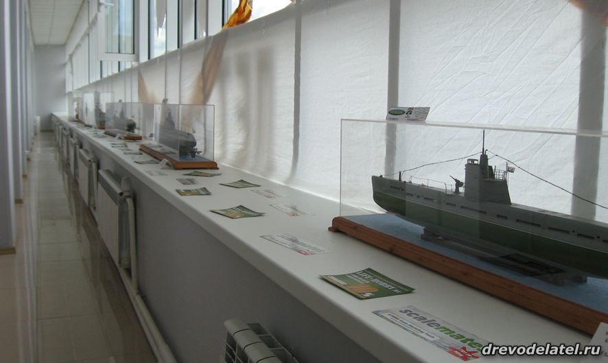 Эскадра моделей подводных лодок на подоконнике.