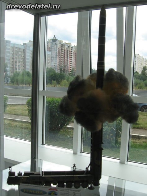 Здесь мне понравилось, как сымитировали клубы дыма от запуска ракеты. Дым сделан из подкрашенных комков ваты, причём выглядит очень реалистично.