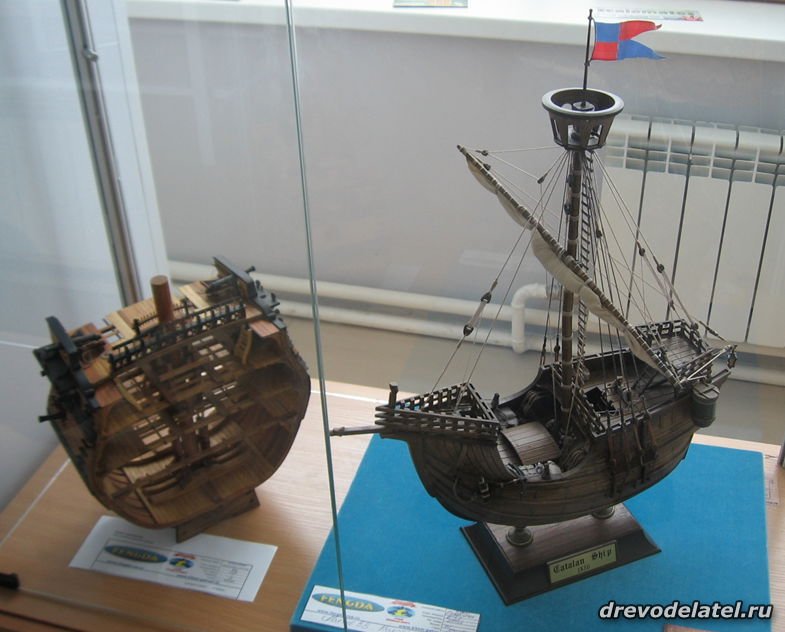 Модель каталонского судна «Матаро» 1436 г. (справа) и слева разрез парусника.