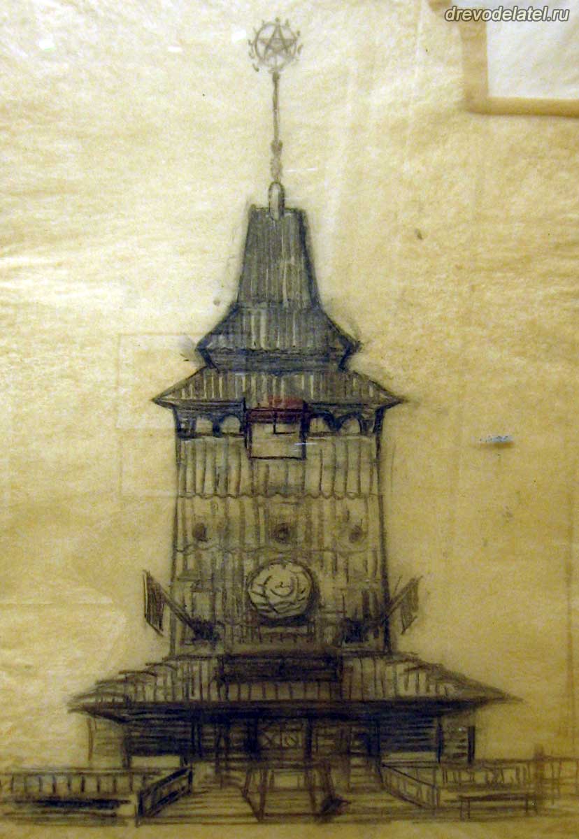 После революции 1917 года началось насаждение новой идеологии, коренная перестройка всего жизненного уклада России. Коснулись изменения и деревянной архитектуры: вместо храмов — мавзолеи и клубы с сельсоветами, вместо кладбищенских крестов — обелиски и пятиконечные звёзды.