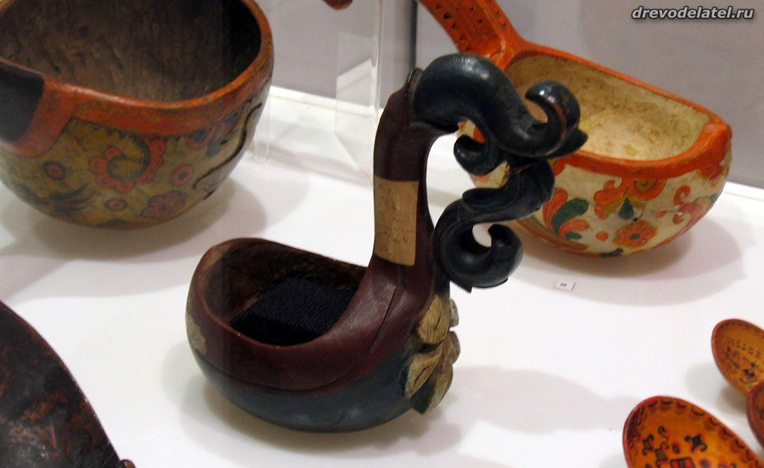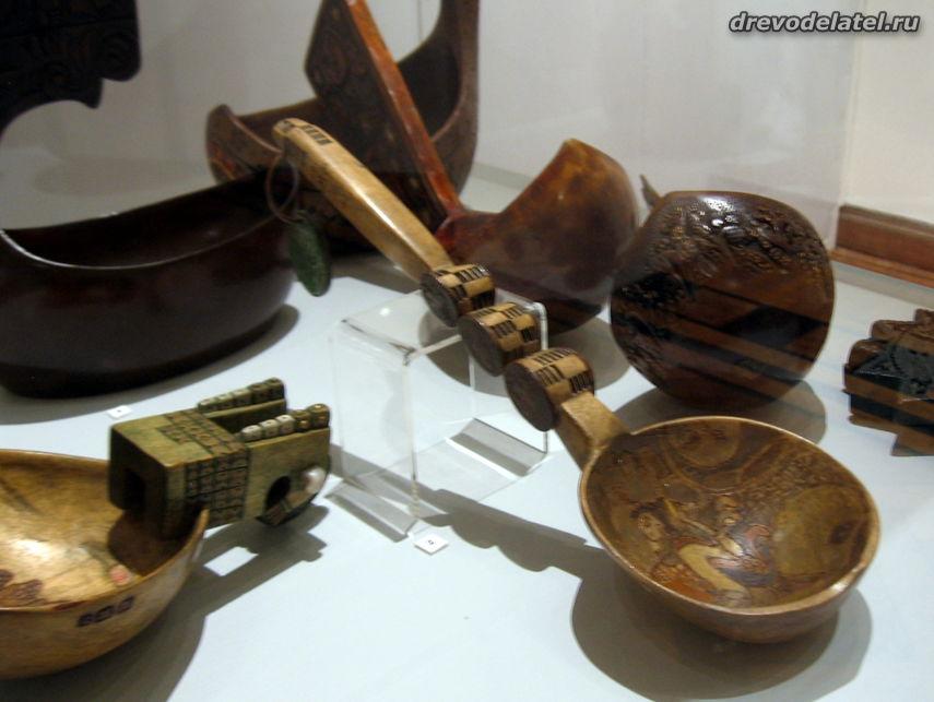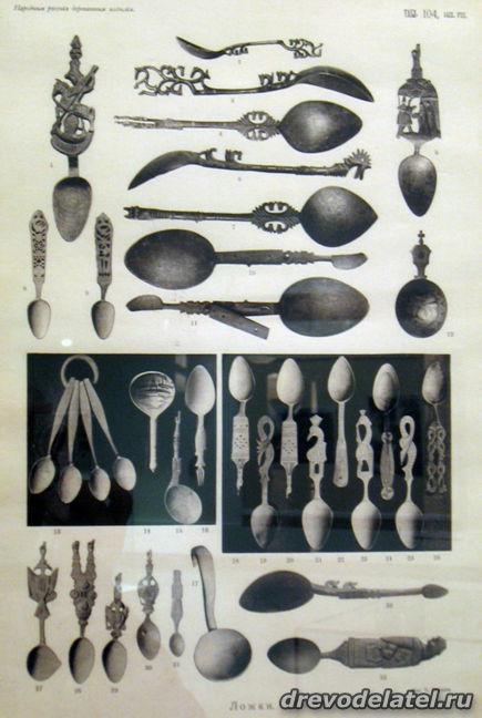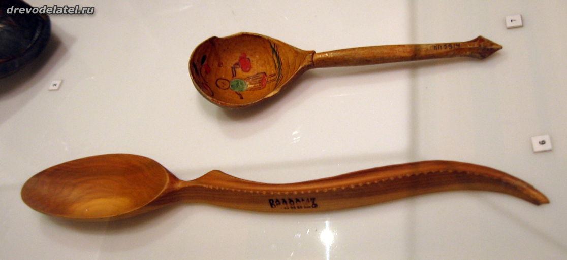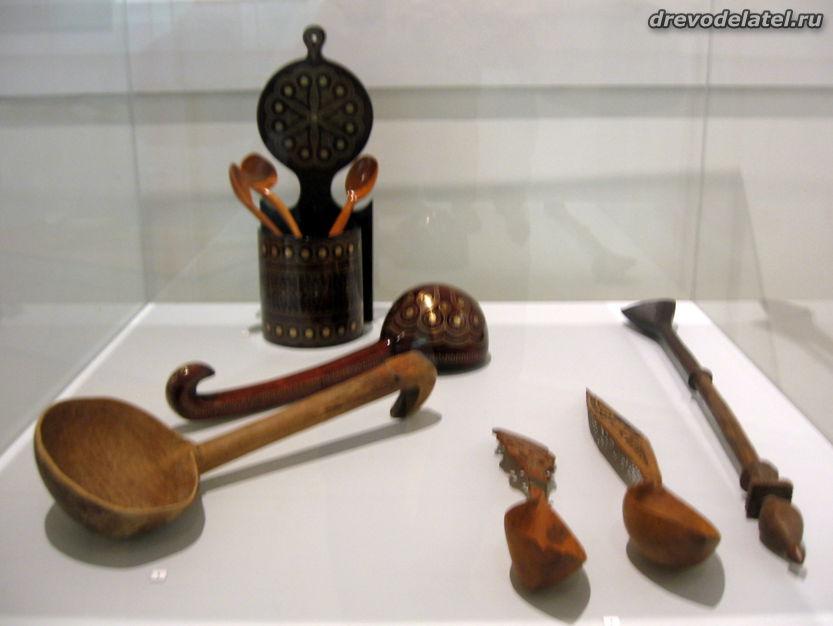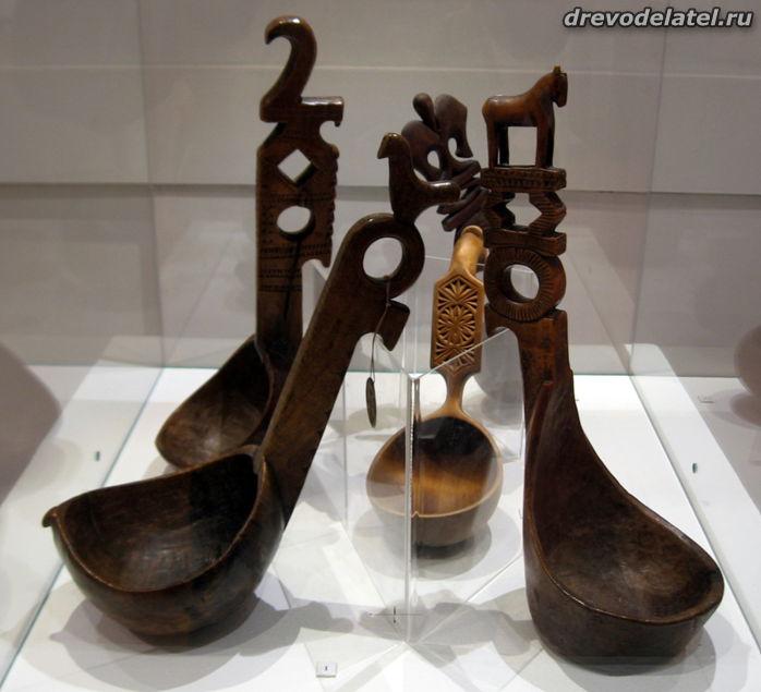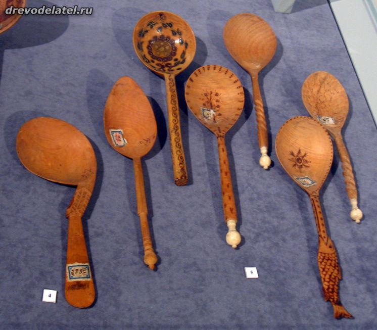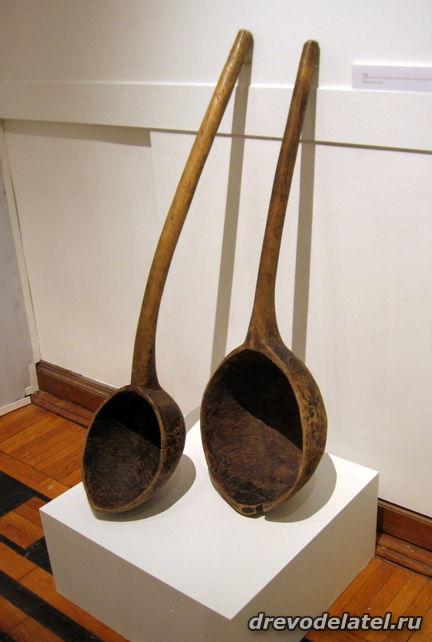 Самые ранние из представленных предметов — ковши, изготовленные в XIX веке на Русском Севере и в Поволжье. Среди других — ложки Сергиево-Посадского региона рубежа XIX-XX веков, в том числе ложки И.С. Хрустачева со сценами из жития Сергия Радонежского, поражающие своей тончайшей миниатюрной резьбой.