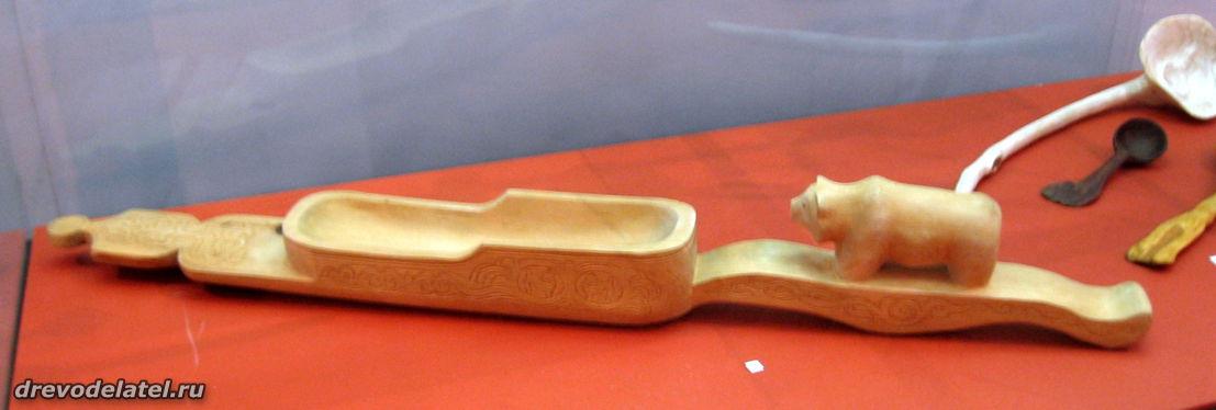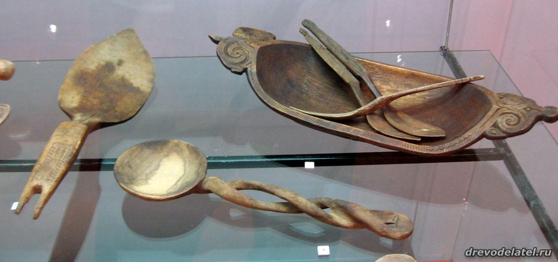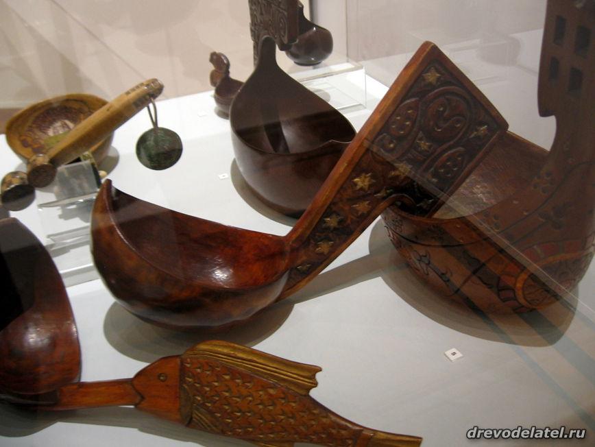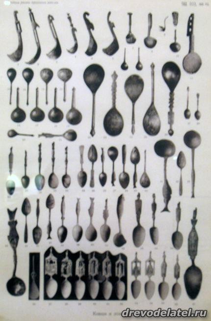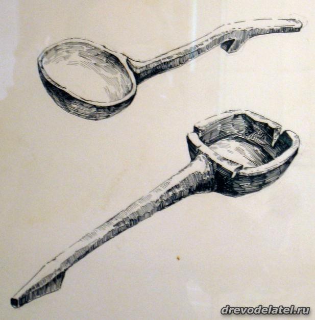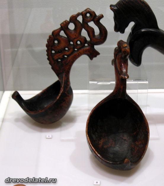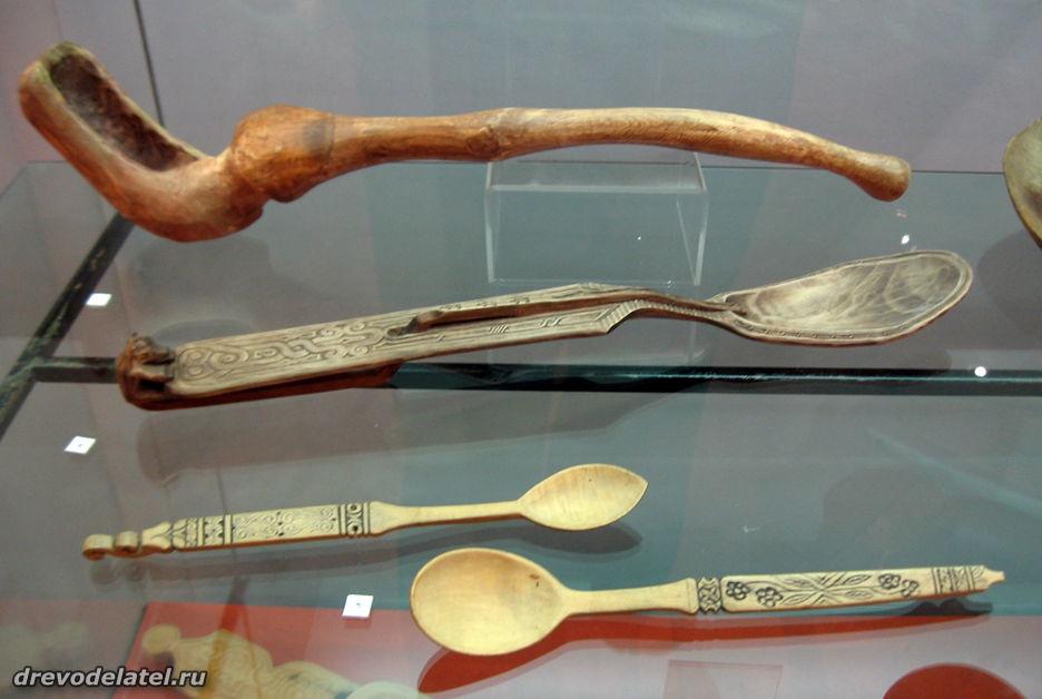 Самые ранние из представленных предметов — ковши, изготовленные в XIX веке на Русском Севере и в Поволжье. Среди других — ложки Сергиево-Посадского региона рубежа XIX-XX веков, в том числе ложки И.С. Хрустачева со сценами из жития Сергия Радонежского, поражающие своей тончайшей миниатюрной резьбой.