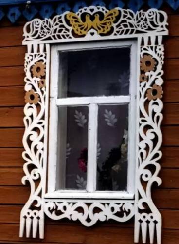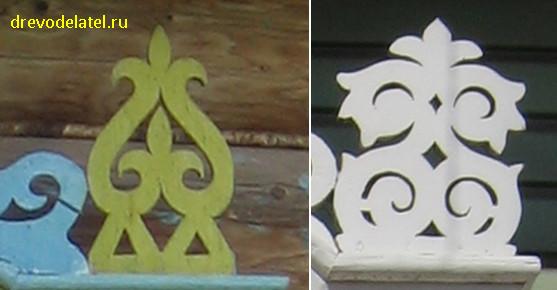 Во-первых, материал для наличников использовался очень качественный — сухие доски без сучков. При пропильной резьбе первый же сучок вылезет со временем из дерева, чем испортит всю картину.