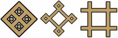 Знаки аграрной символики, пожалуй, самые простые, одни из самых распространённых. Ромбики с точками внутри, перекрещивающиеся двойные полосы, квадратики — так рисовали наши предки вспаханное и засеянное поле.