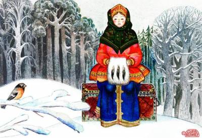 Ещё более оригинален другой вид специально крещенского гадания: в сочельник, после заката солнца, девушки нагие выходят на улицу, полют снег, кидают его через плечо и затем слушают — в которой стороне послышится что-нибудь, в ту сторону и замуж выдадут.