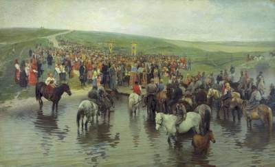 Хозяйки гонят скот освящённой в неделю Ваий вербой, а иные провожают его с хлебом и солью. Пастух, принимая стадо, делает свой обход с тем же образом и тоже с уверенностью, что такое дело его есть священнодействие (Егорьев день вместе с тем и пастуший праздник, когда оберегатели стад дают твёрдое обещание во всё время пастьбы не стричь волос своих на голове, чтобы отвлекать от стада волков).