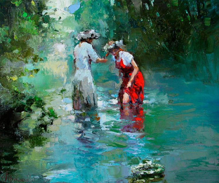 В свою очередь, и девушки стараются отомстить парням и тоже бегут на реку за водой и грязью. Начинается, таким образом, общая свалка, полная веселья, криков и смеха. Кончается дело тем, что молодёжь, перепачканная, мокрая, в прилипшей к телу одежде, гурьбой устремляется на реку и здесь, выбрав укромное местечко, подальше от строгих глаз старших, купается вместе, причем, разумеется, и парни, и девушки остаются в одеждах.