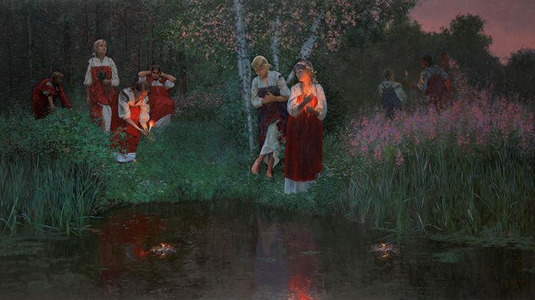 Впрочем, сердца деревенской молодежи зажигаются и без папоротника, потому что ещё накануне Купалы, рощи, берега рек, леса и луга оглашаются весёлыми хороводными песнями, и парни и девушки вместе ищут чудодейственных трав, вдали от строгих глаз матерей и отцов.