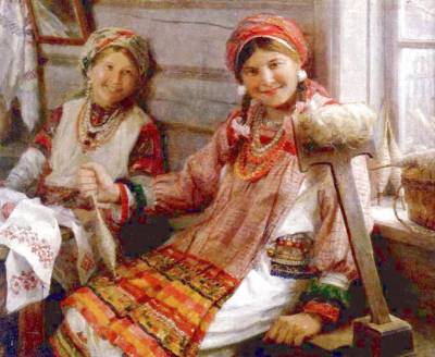 В особенности большой интерес представляют Святки для девушек: в их однообразную трудовую жизнь врывается целая волна новых впечатлений, и суровые деревенские будни сменяются широким привольем и целым рядом забав и развлечений.