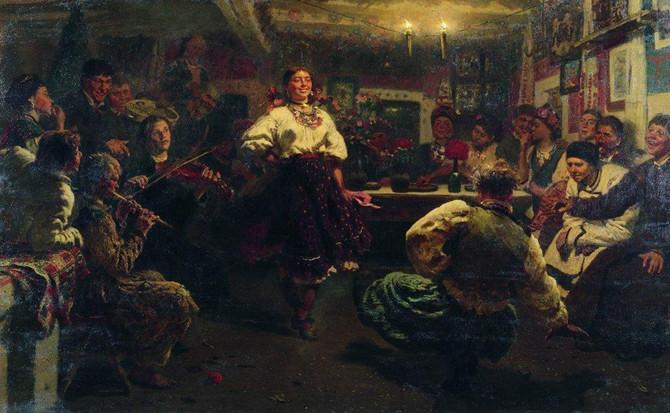 К концу дня обыкновенно все мужики за двадцать пять лет еле ноги волочат, многие женщины тоже. Среди этого разливанного моря и ненасытного разгула отрадное исключение составляет только деревенская детвора (и отчасти парни и девушки), которые ходят по дворам и славят Христа. Славильщики обыкновенно поют тропари и кондаки празднику и лишь в конце вставляют так называемые присказки. Вот для образца одна из таких присказок: